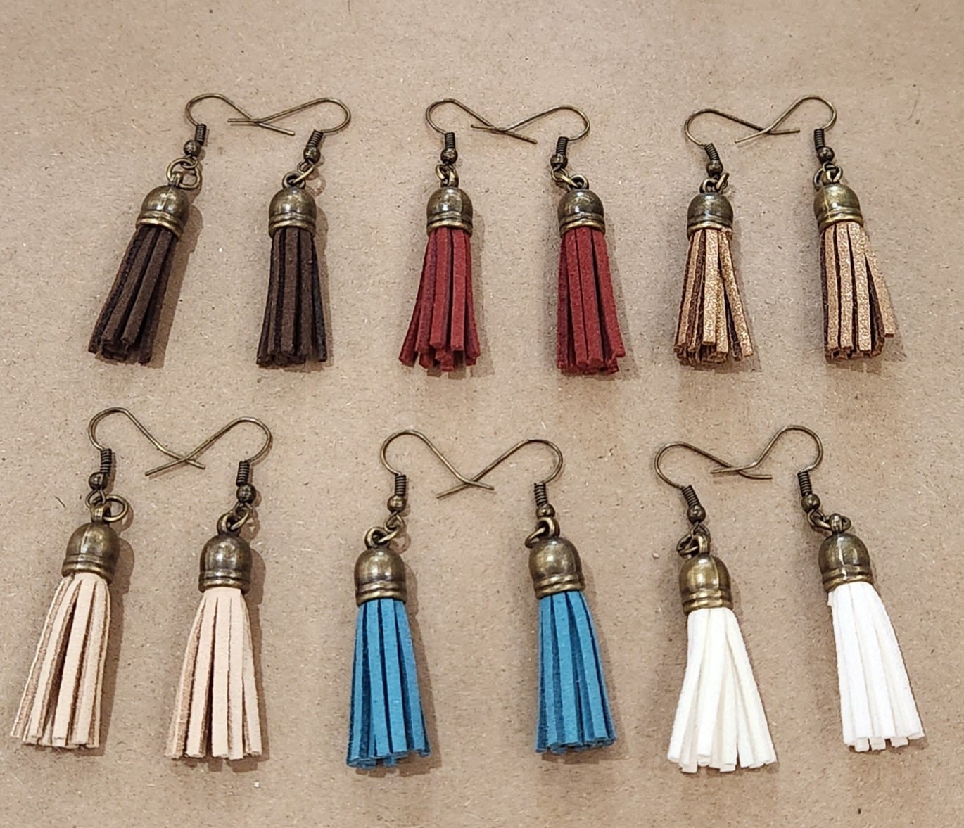 Leather Tassel Earrings. Choose from these colors with brass ear wire hooks.